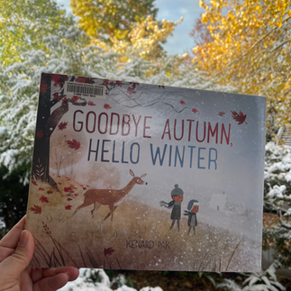 1) Goodbye Autumn, Hello Winter by Kenard Pak. This is part of the series by Pak that so beautifully shows the changes from season to season. His illustrations are beautiful and we love the simple conversation with common animals, plants and other objects from each season. This is great for a wide range of ages and the pages provide lots to look at!