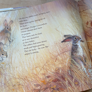 3) Birdsong by Julie Flett. This book is a story about a girl and her mom who move into a new home and meet an elderly neighbour. Although it is not specifically about fall to winter changes, it does take place over the year and each season is divided with the changes in the neighbours health. There are themes of friendship, loss and hope entwined throughout.